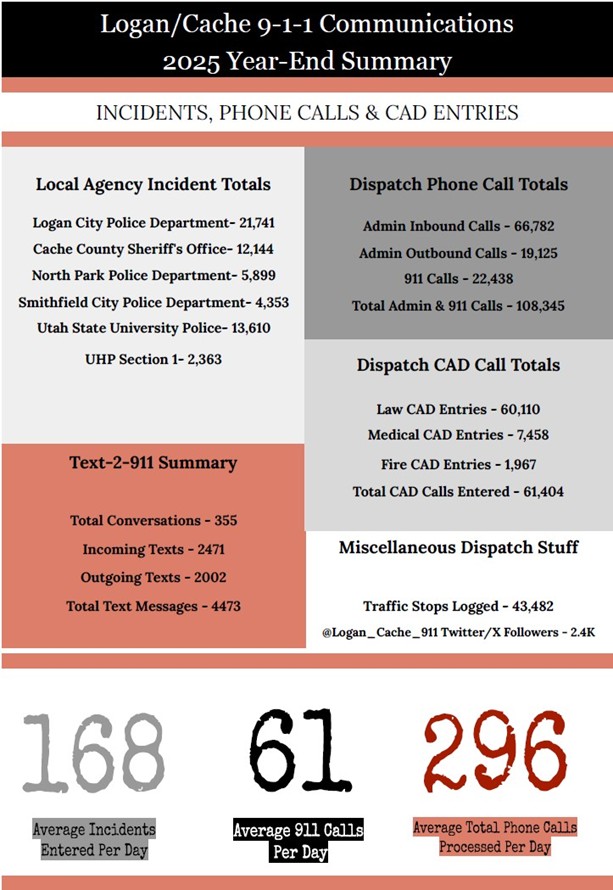 The data presented in this report is sourced from our records management system, Spillman, as well as dispatch records provided by our partners at Logan 911 Communications Center.