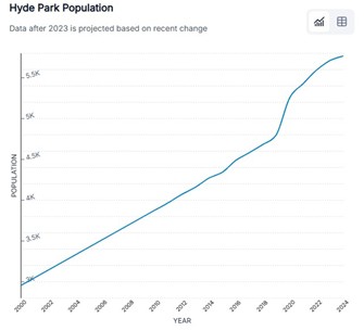 Since 2020, Hyde Park City population has increased 9.7%