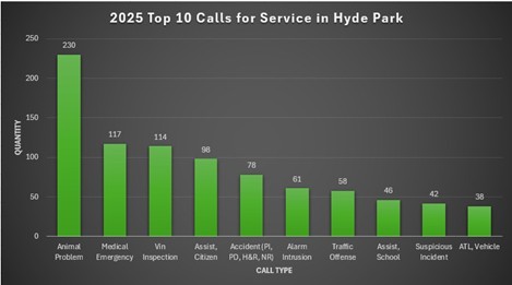 This past year was a very busy year for the North Park Police Department. Our officers and staff handled 5,906 calls for service, averaging 590 calls per officer.